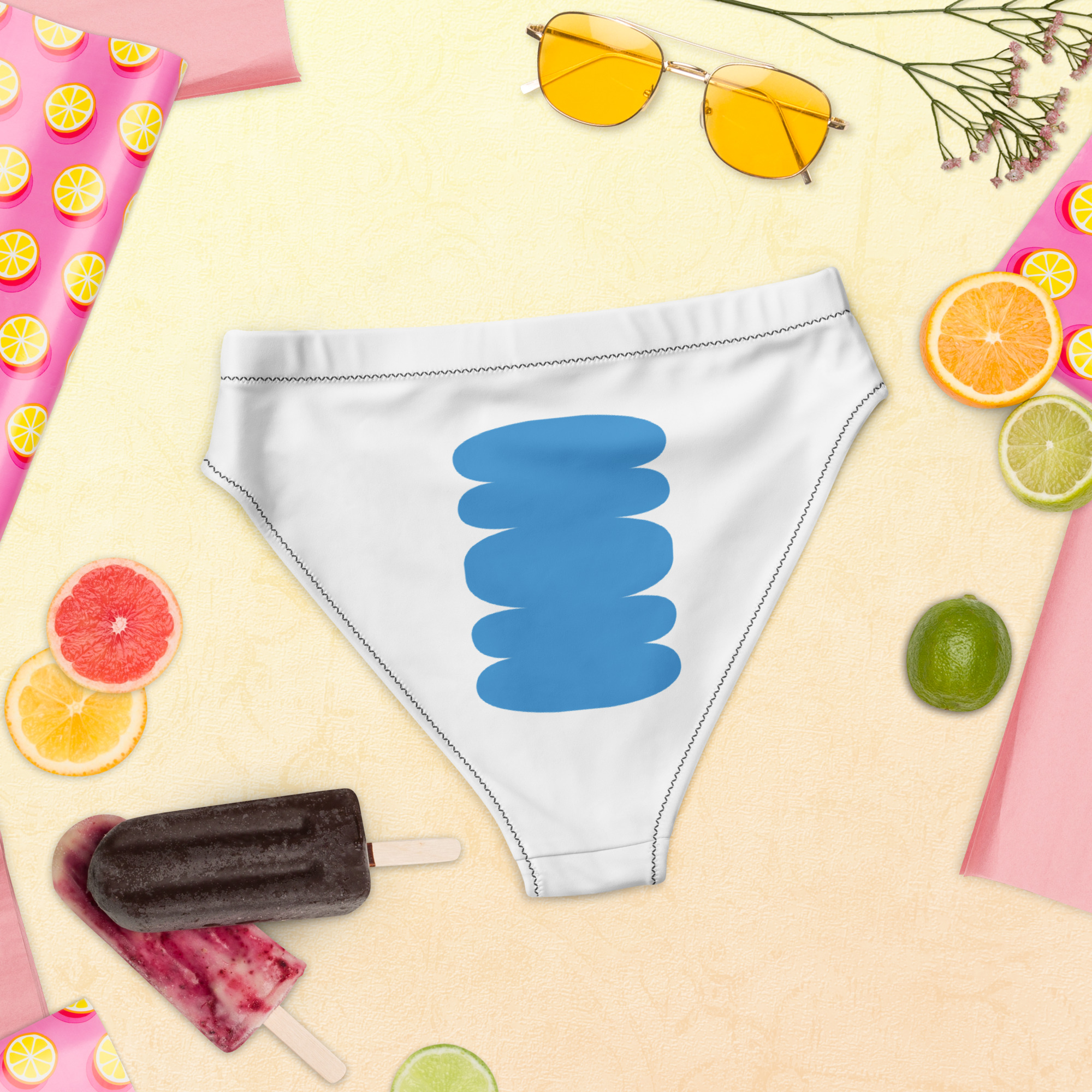 Get this Recycled high-waisted bikini bottom and match it with your favorite swimsuit top. It’s comfortable, high-waisted, and double-layered—perfect for an adventurous beach day or a chill spa visit!