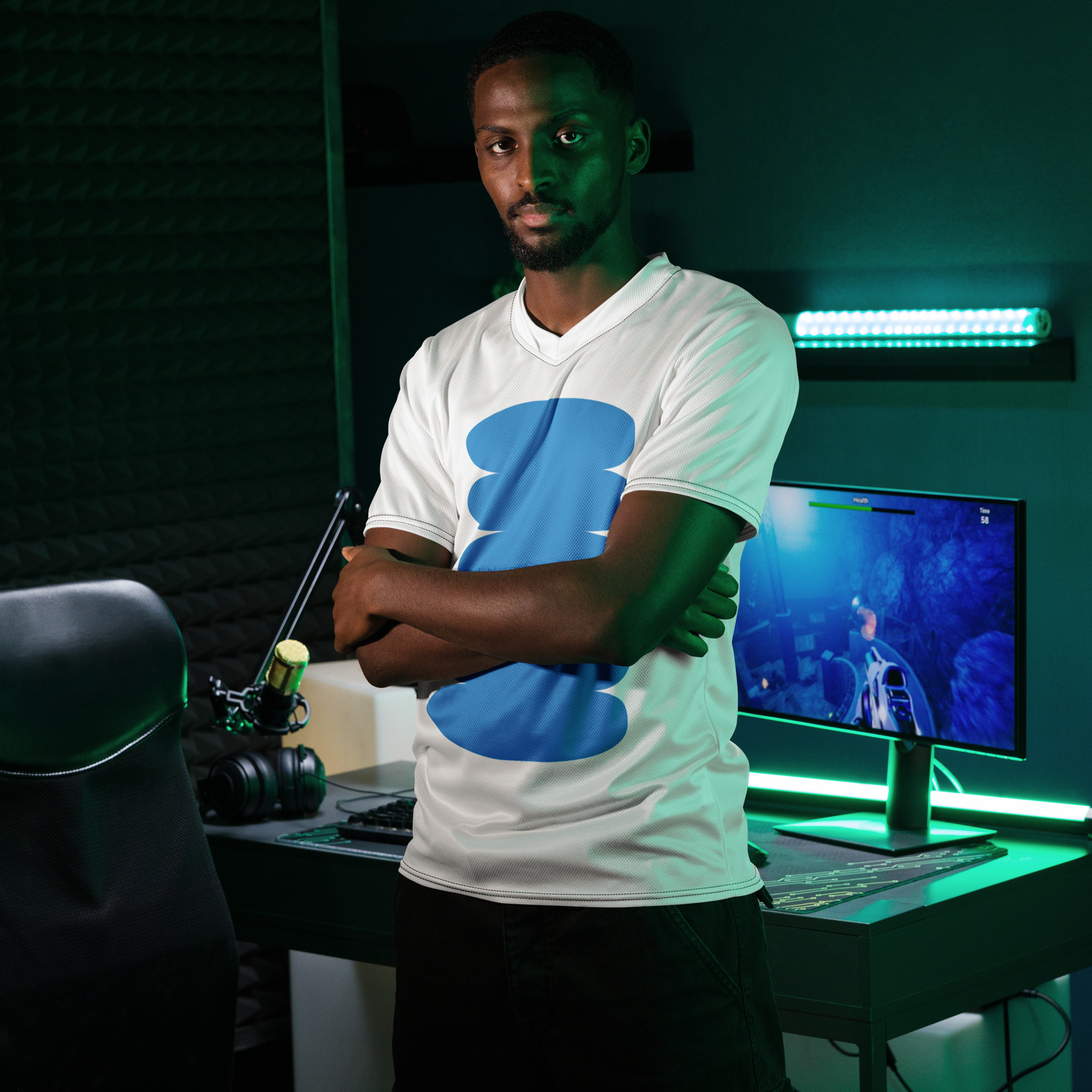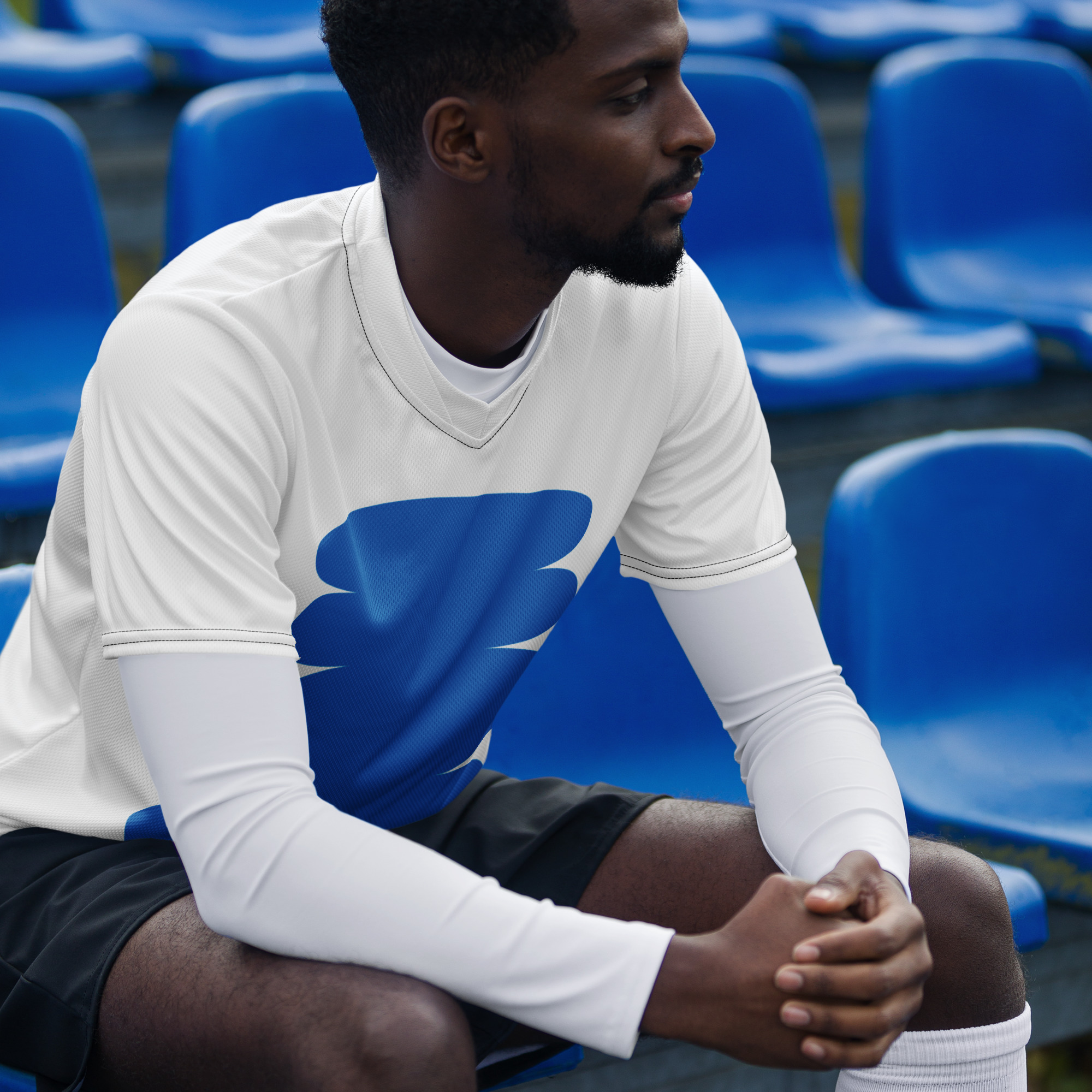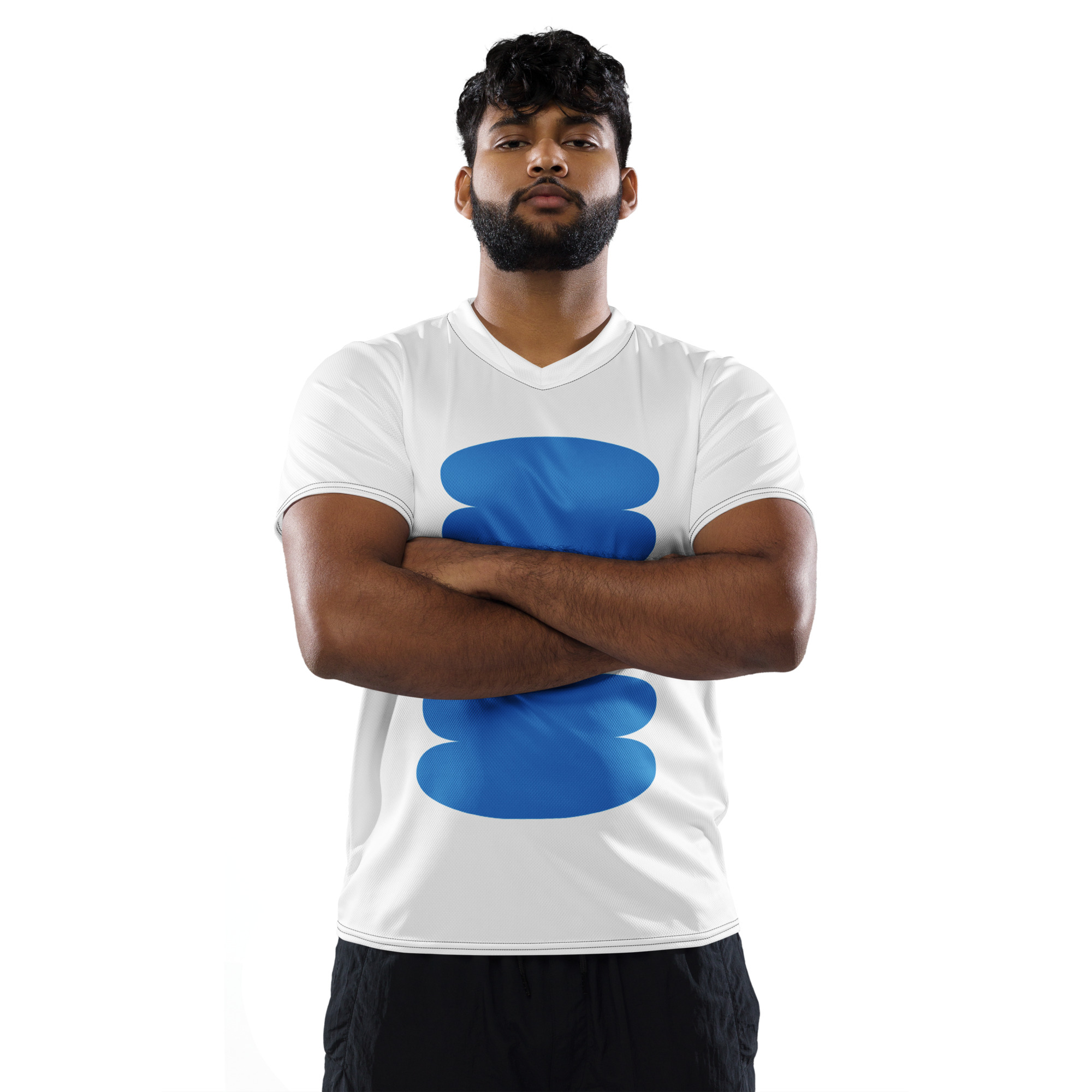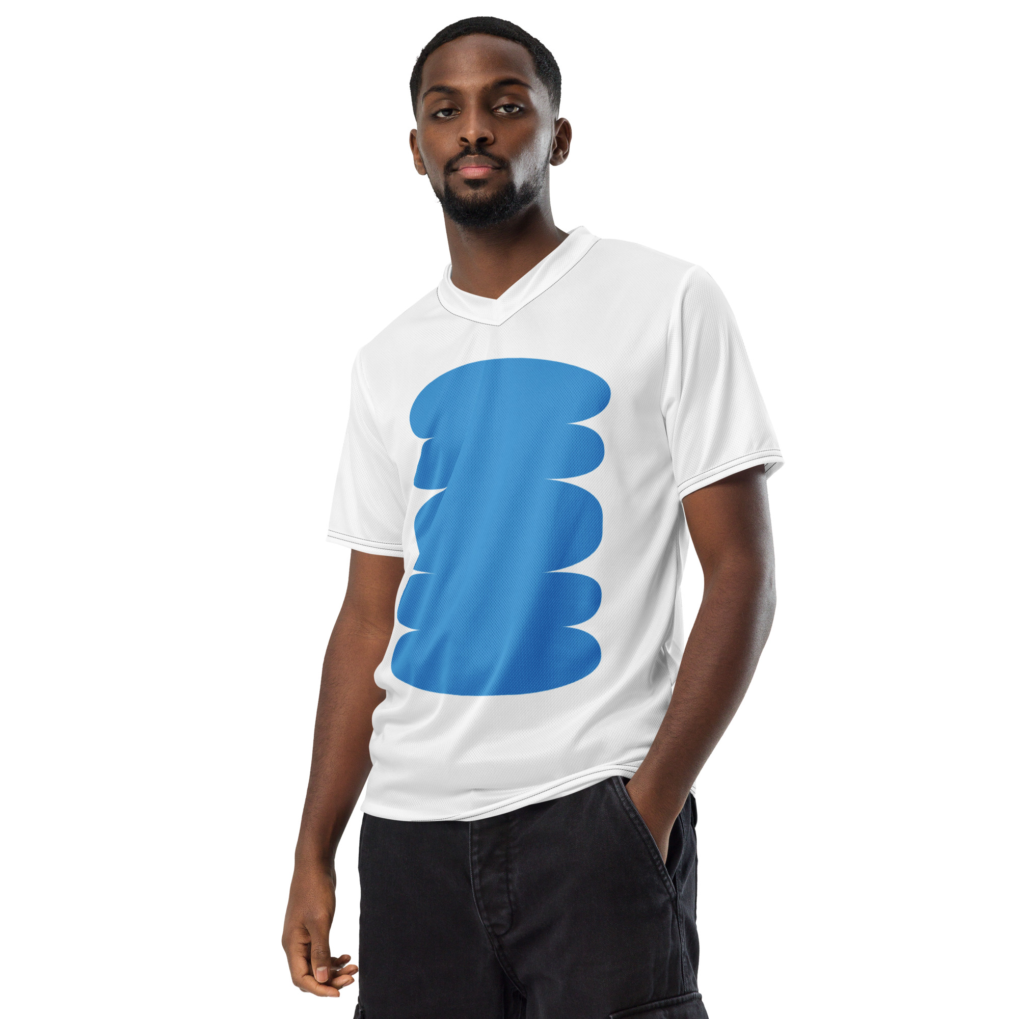 Looking for the perfect sports jersey? We have you covered—made of 100% recycled polyester fabric, this shirt is breathable, moisture-wicking, and has a double-layered v-neck collar that creates a premium look.
